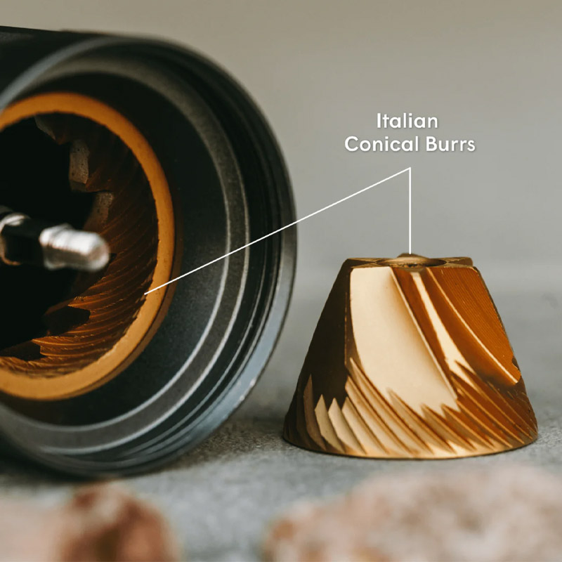 This hand grinder coffee design features a long magnetic handle and dual bearing system that ensure effortless grinding. Smooth, consistent, and low-effort, it’s the coffee grinder manual users reach for on the move.