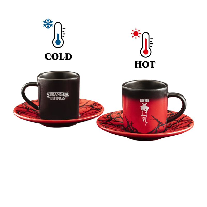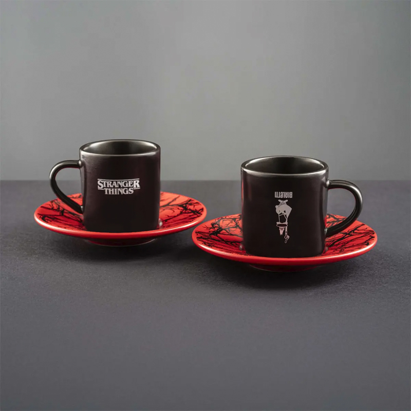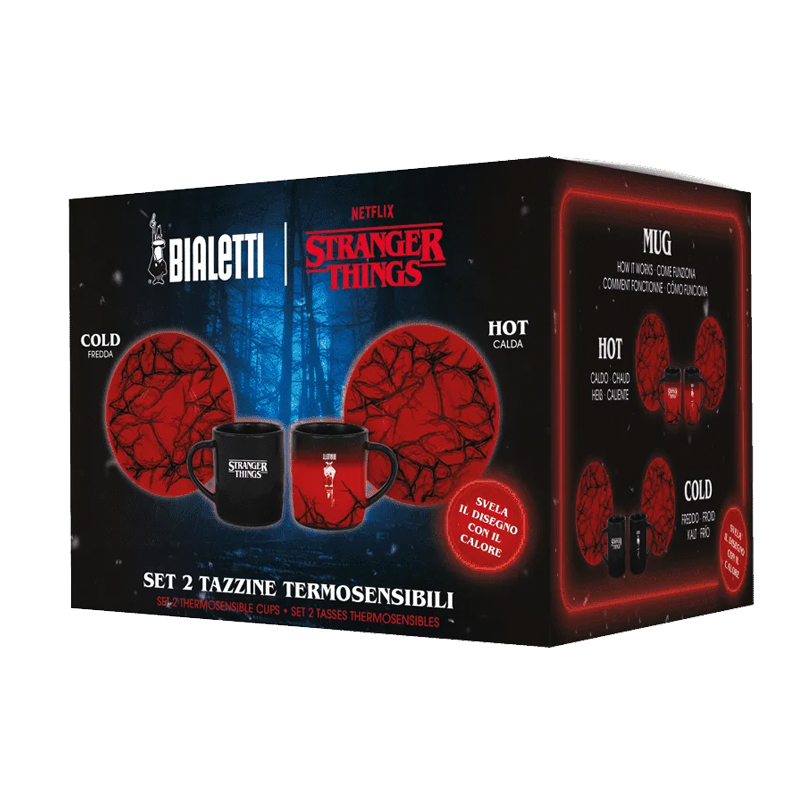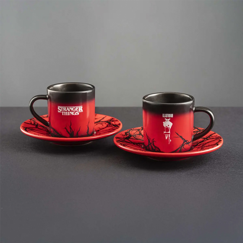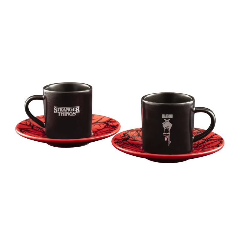 - Heat-sensitive product: the espresso cups change colour when in contact with a hot drink, turning from black to red and revealing patterns inspired by the Upside Down.