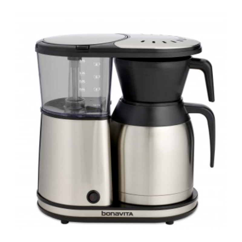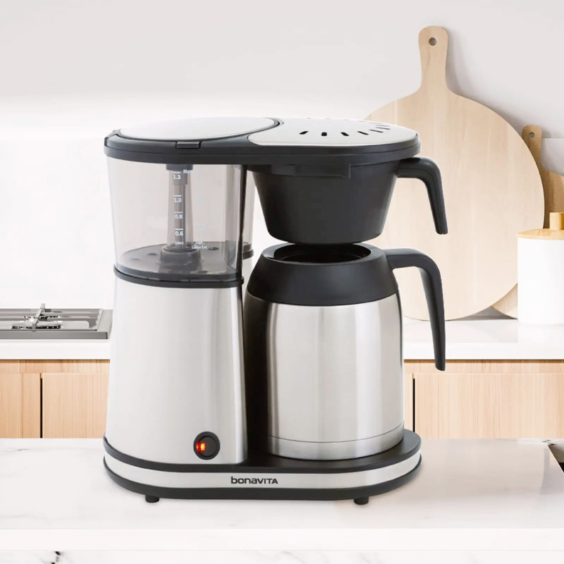 Its stainless steel brewer features a powerful and precise 1100-watt heater that maintains an optimal brewing temperature of 195°-205°F (91°-96°C). The optional pre-infusion mode immerses your freshly roasted ground coffee to allow degassing before brewing. The carafe lid, filter basket, and showerhead are all dishwasher safe and the plastic is BPA-free. Our specially-designed showerhead is ideal for extraction in small batch sizes and the one-touch brew action with auto-off makes it oh-so simple to use.