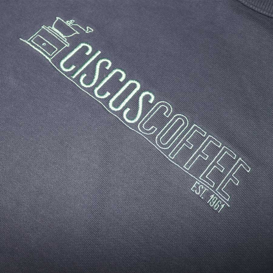 Get cosy with this exclusive Ciscos Coffee merch. 100% cotton french terry sweater in Petrol Blue has a relaxed fit with full logo embroidery on the chest, with the iconic coffee grinder on the nape.