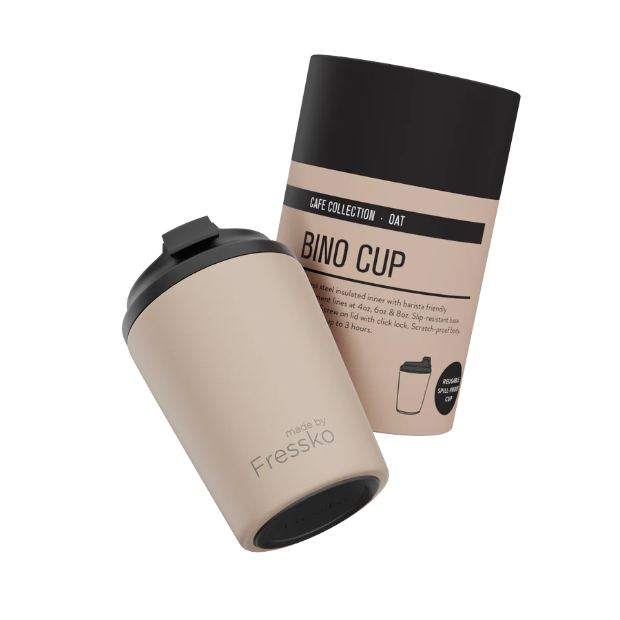 The Fressko Bino is an 8oz reusable coffee cup designed as a sustainable swap for standard takeaway cups, offering enough capacity for flat whites, cappuccinos, and long blacks. The Fressko Bino delivers reliable heat retention in a sleek, scratch-resistant finish that suits daily commuting or office use.