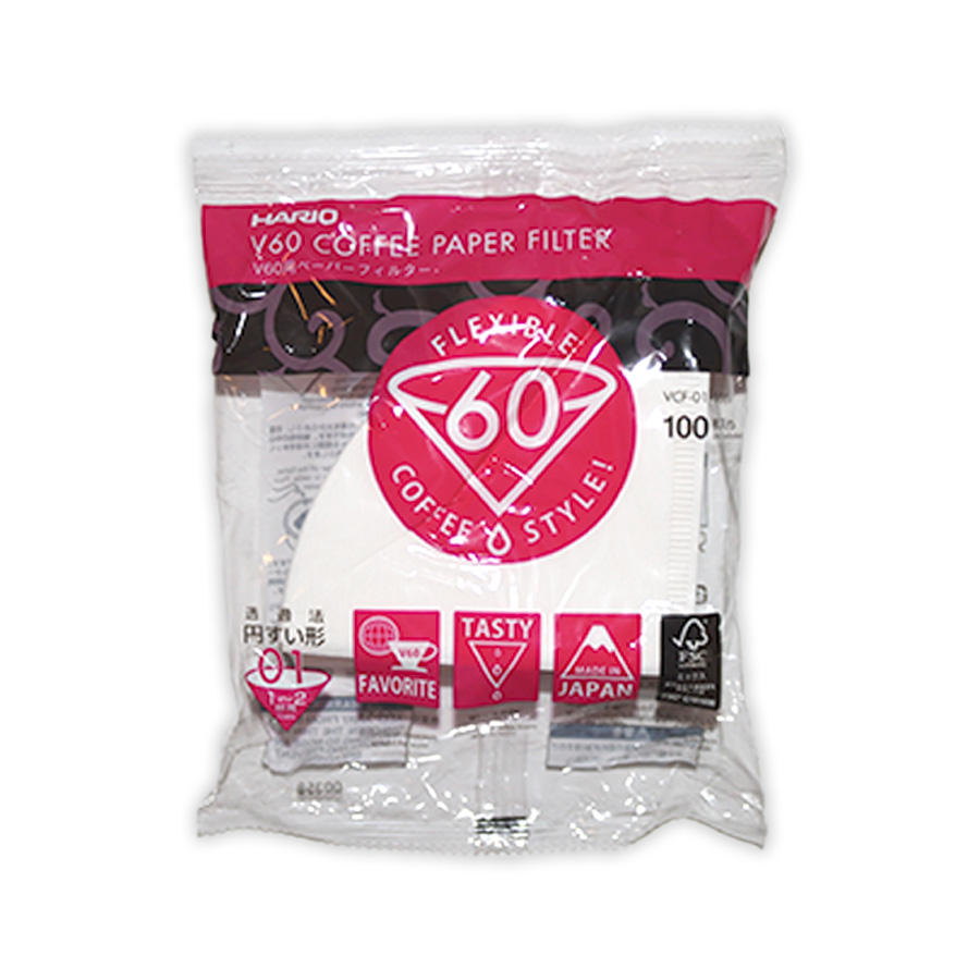 Widely recognised around the world, the Hario V60 01 Papers are Oxygen Bleached Paper Filters allowing for a vibrant clean look and smoother texture to the filter. Why the cone shape? The cone shaped paper filter adds depth to the coffee layer, so that the water flows to the centre, extending the amount of time it is in contact with the ground coffee.