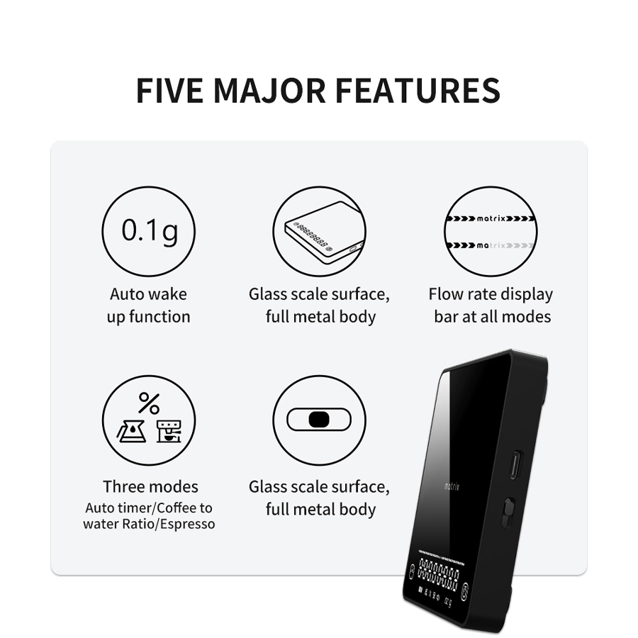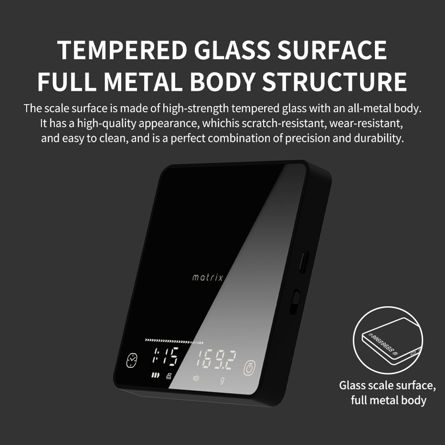 Matrix is a cutting-edge brand dedicated to revolutionising the coffee brewing experience through smart technology and precision engineering. Focused on coffee scales and brewing accessories, Matrix combines innovative AI-powered features with sleek, durable design to provide baristas and coffee enthusiasts with tools that elevate every cup. Their products simplify complex brewing variables by integrating advanced metrics like dual-ratio calculations, automated extraction tracking, and flow-rate monitoring, ensuring consistent, café-quality results with every brew.
